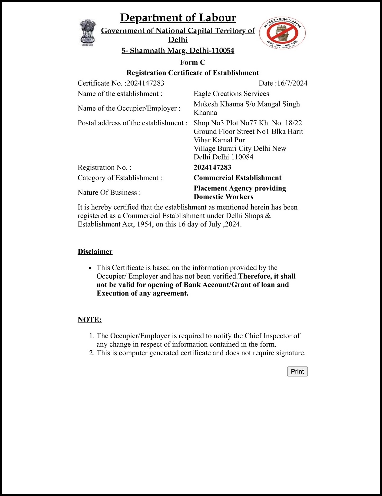 Related legal documents of Eagle Creation Services